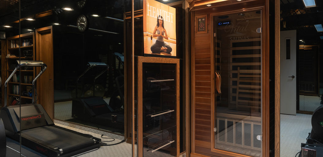 The lower level is dedicated to entertainment and wellness, featuring an incredible home theater with a snack room, a spacious mirrored home gym, and a post-workout sauna.